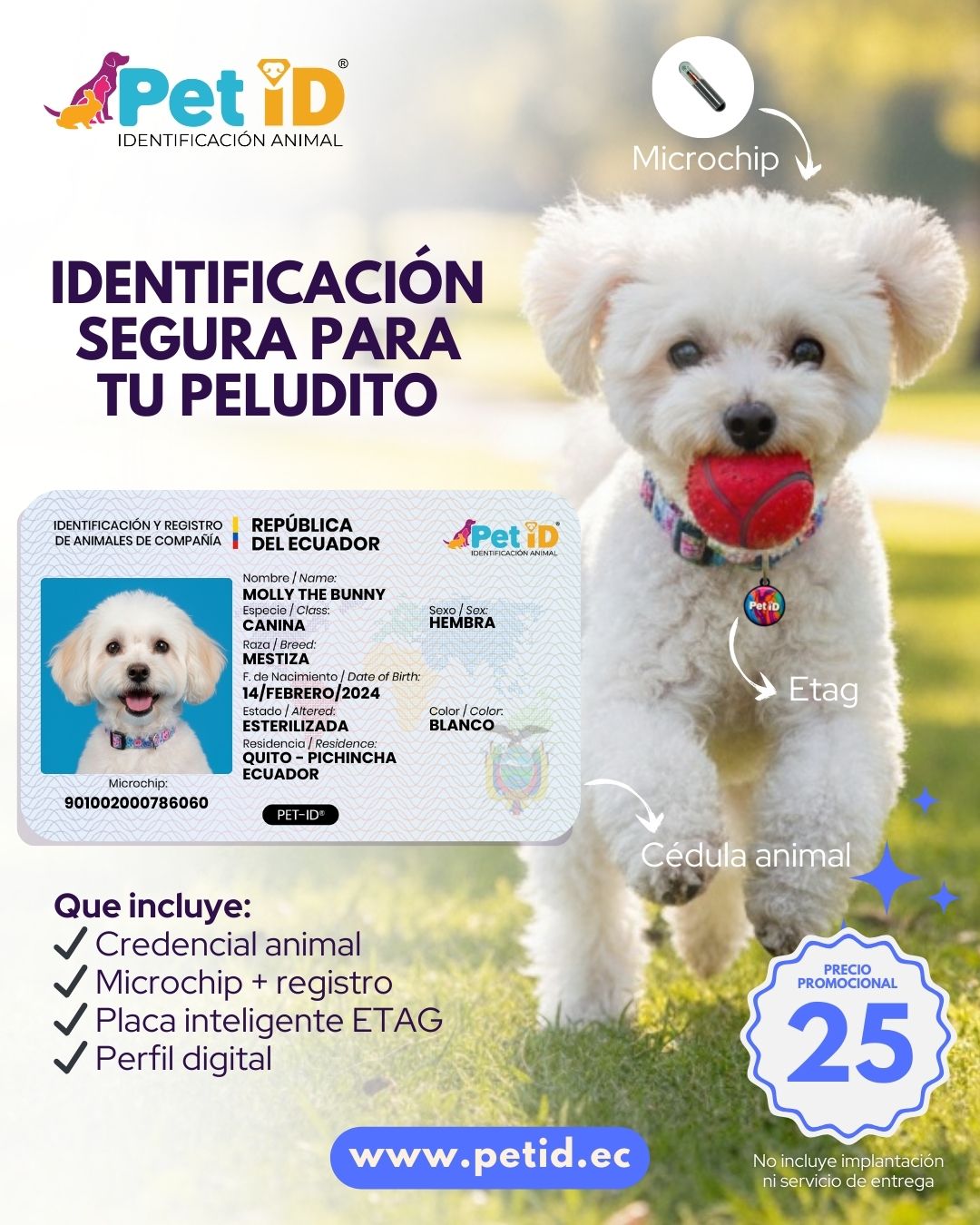 Incluye microchip+registro, placa inteligente, cédula y perfil digital